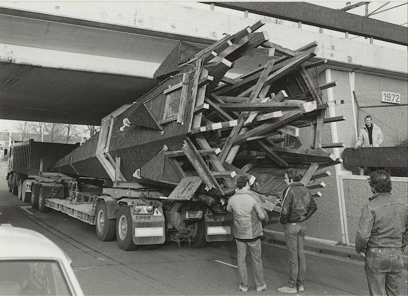 Hierboven een leuk voorbeeld hoe circulair slopen in het verleden al werd toegepast. Op de dieplader rust de toren van de Spaarnekerk te Haarlem. Deze toren werd door Bottelier ontmanteld en kreeg een nieuw leven. Tegenwoordig rust de toren op de Febo in Haarlem Schalkwijk.